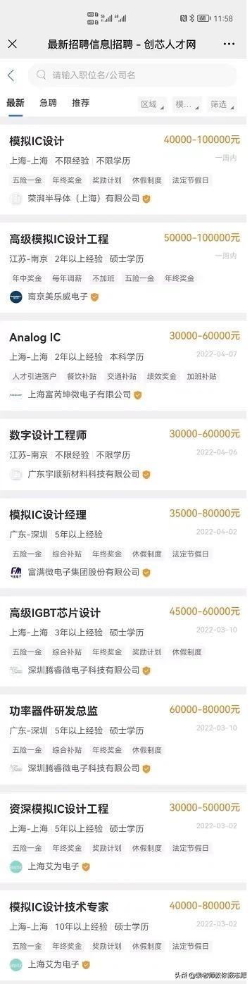 目前芯片市场需求旺盛,应届本科毕业生拿到30W+的offer也是稀疏平常,看招聘情况图: