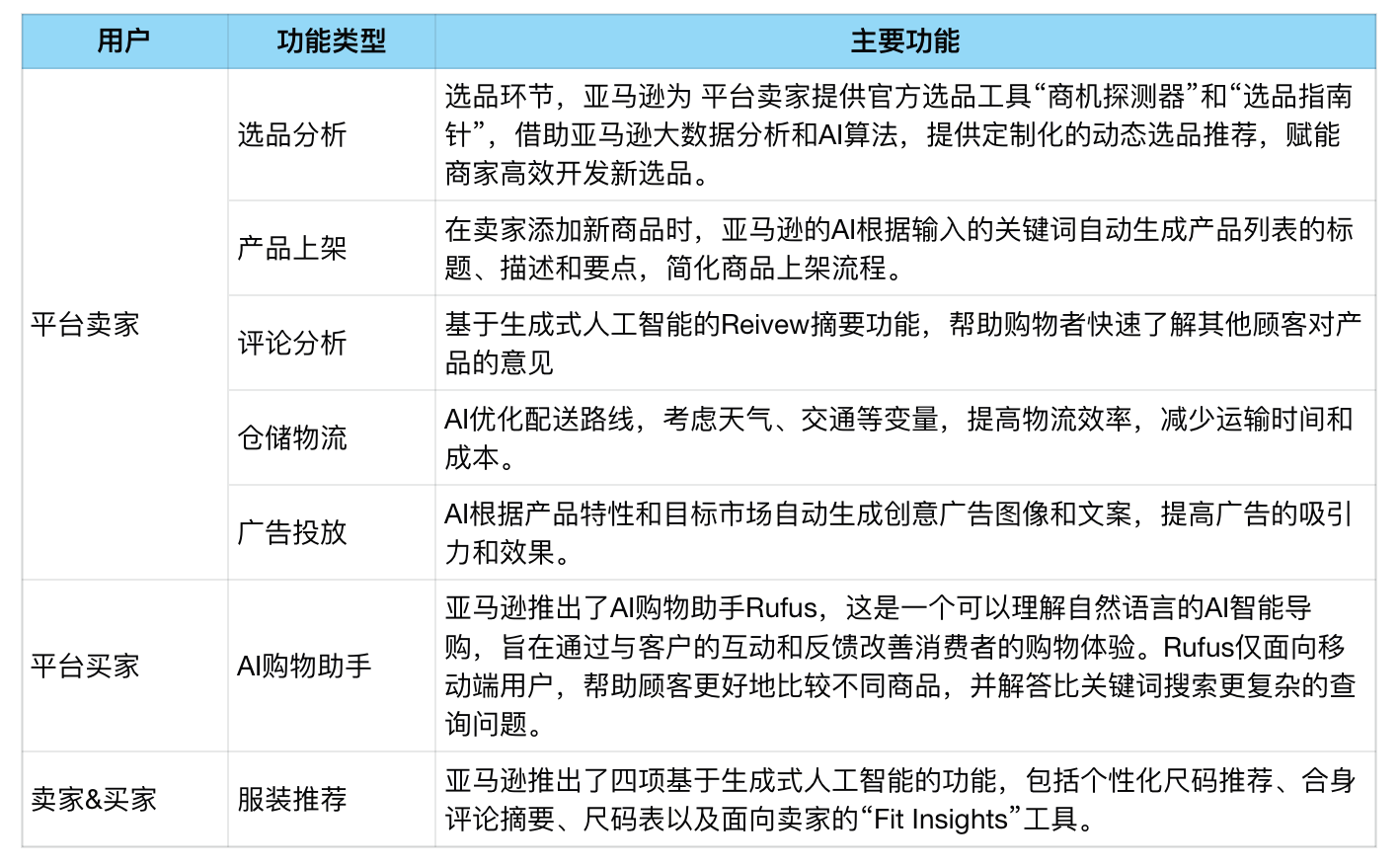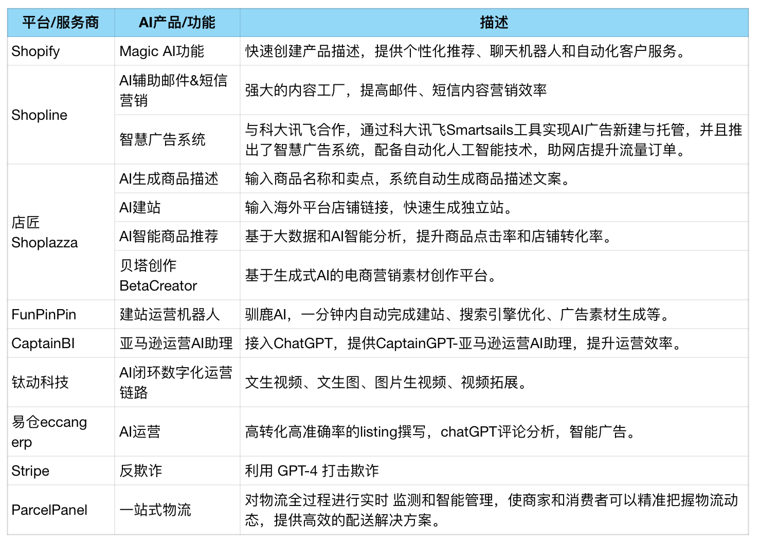 AI可以重点赋能销售环节中的选品分析、产品上架、运营管理和客户服务等模块,提升整体转化率和客单价 :