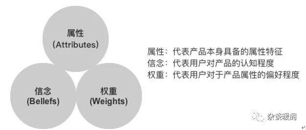 在早期研究消费行为时,人们认为用户对产品的态度和习惯决定了消费行为的模式。态度和习惯的行为研究模型叫做U&A模型。U&A模型比较常见的模式是费歇宾模式(TheFishbcin Model),该模式是1963年由Fishbcin提出的理论,它认为某一客体或行为的态度是由下面两个要素组成: