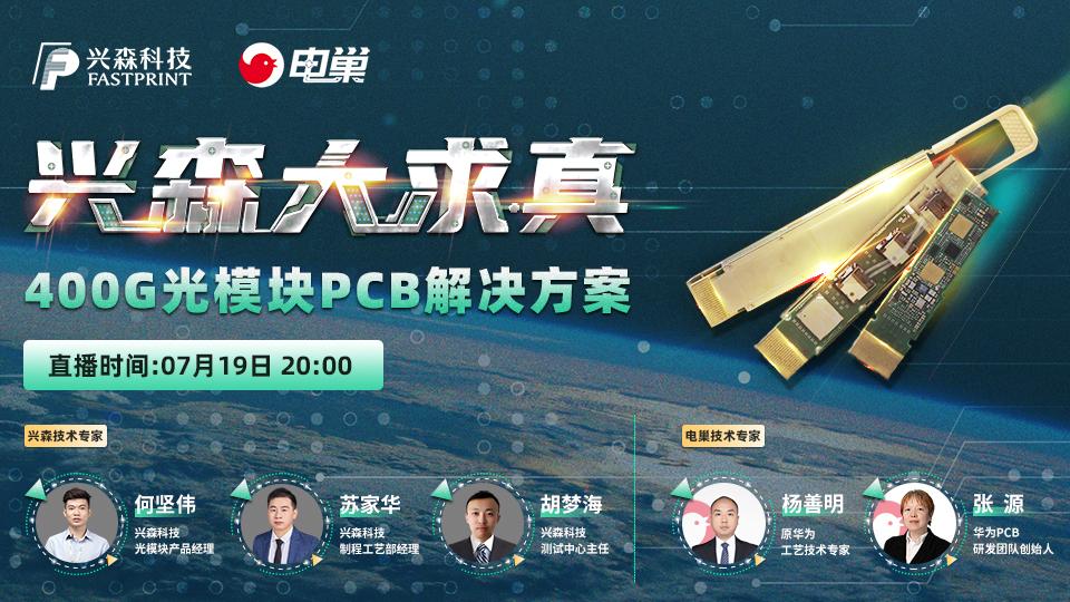 兴森科技携手电巢直播,正式推出“兴森大求真”系列直播,首期直播将围绕400G光模块,浅谈其市场机遇,拆解其结构,详解其PCB的设计—仿真—制造—测试,实地深入兴森科技工厂、实验室,层层为广大企业客户揭开神秘面纱!