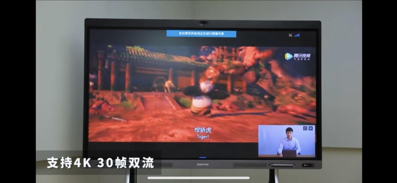 画质上,搭载4K摄像头、4K触控屏和4K硬件编解码器,全链路4K,保障会议画面超清细腻。同时,苏州科达会议屏还支持4K30fps双流,共享的超清视频内容,清晰不卡顿。
