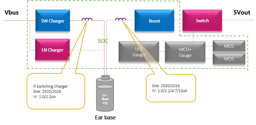 TWS耳机内锂电池电压一般在3.4-4.4V,由于为耳机充电需要5V左右的电压,因此便需要升压电源芯片将电压升至5V,在这一过程中升压电源芯片的外围则需要用到一颗功率电感作为储能器件。