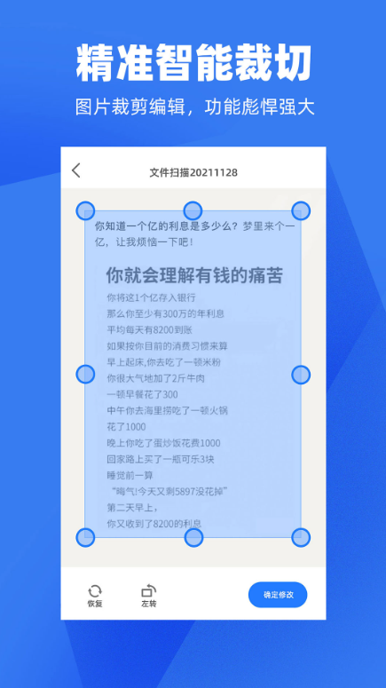 天天扫描作为一款广受用户欢迎的图片扫描应用程序,以其出色的性能和智能化操作而著称。该工具在图像处理领域内,因其能够高效地识别和提取图片中的文本内容而受到了广泛的好评。不论是正式的文档还是日常的照片,天天扫描都能迅速而精确地将它们转换成电子文本格式,极大地方便了用户的文档管理和信息整理。