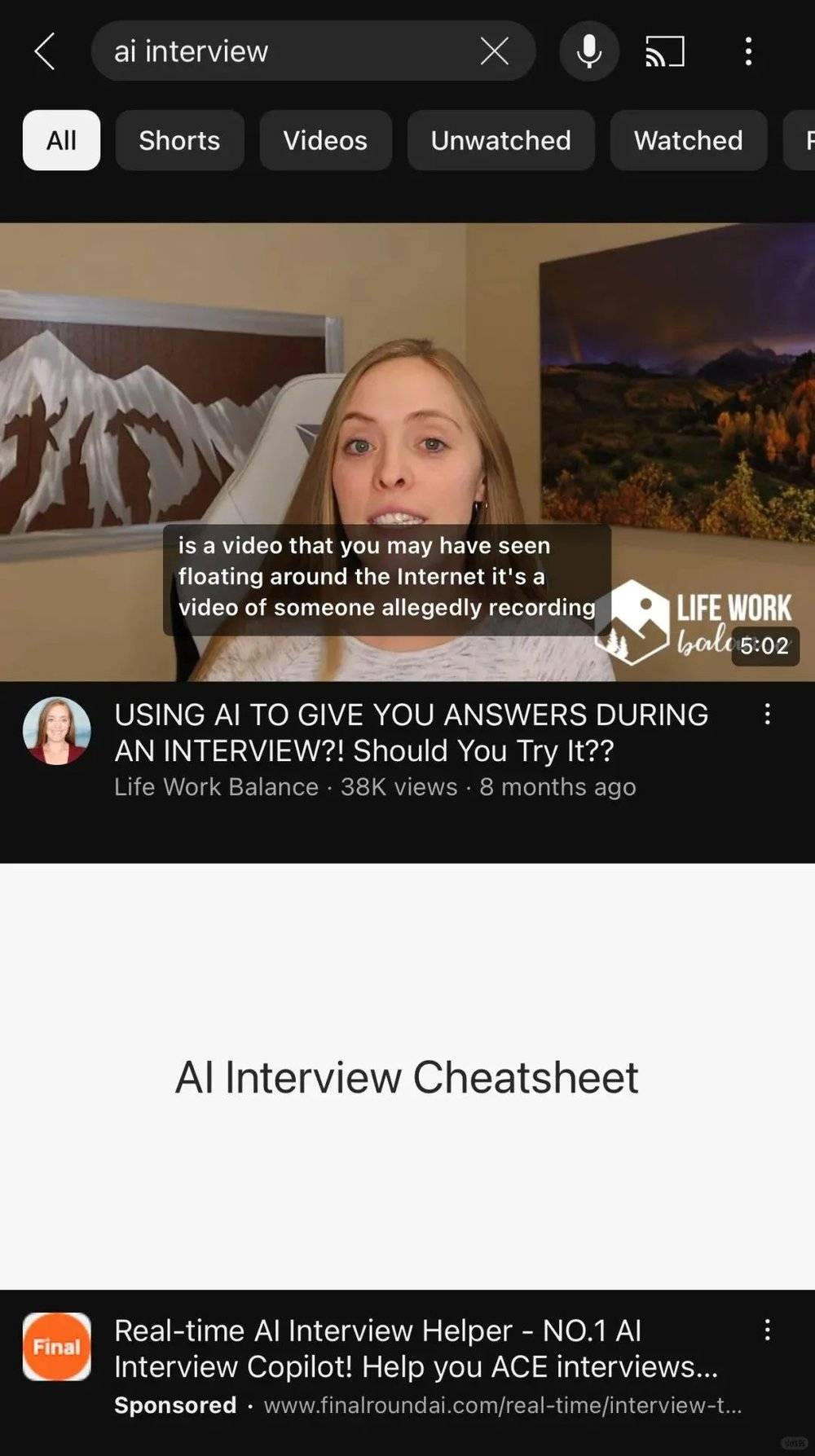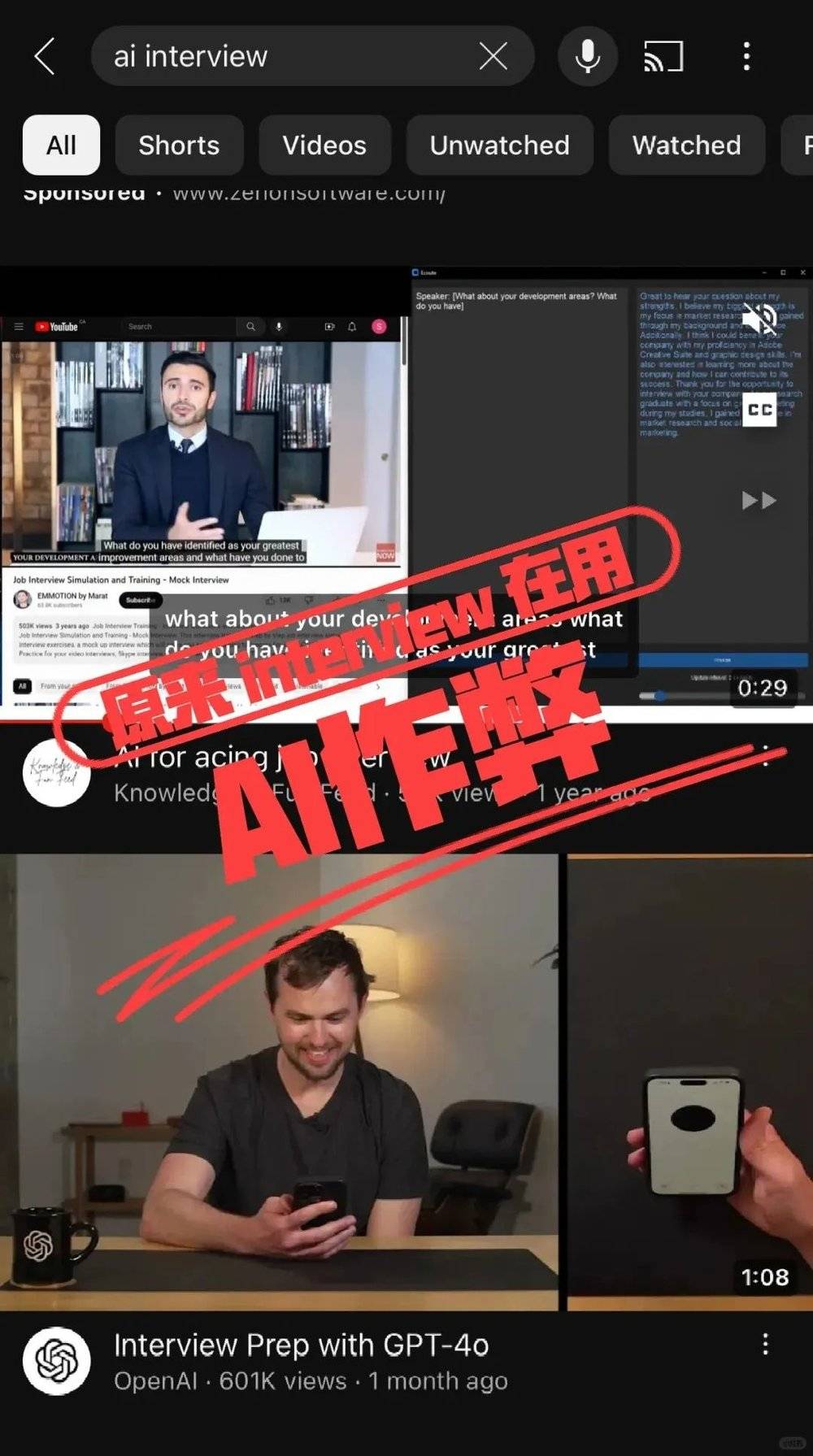 出于好奇,他进行了一番搜索,发现YouTube上现在充斥着许多教授如何利用AI技术辅助技术面试的视频。“在Google上搜索‘AI interview’,打开你新世界的大门。”