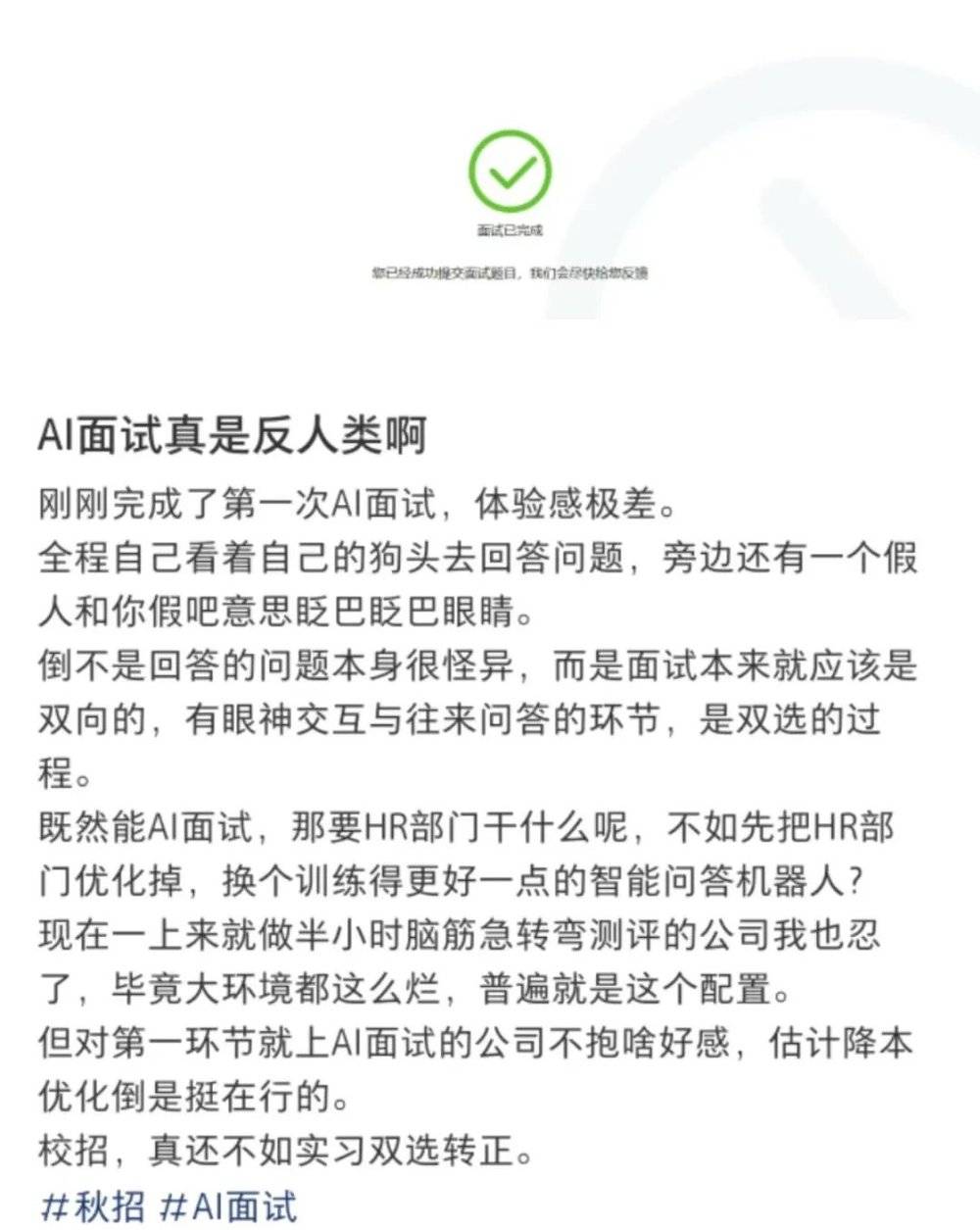 “我了解AI,但我不了解AI面试。”