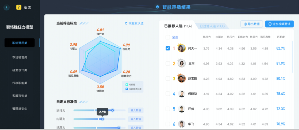 猎聘旗下的多面市场负责人曾指出,AI算法与人工标注的命中率在85%以上,并且随着有效数据的积累学习,未来算法的精准度有望不断提高。然而,也有求职者对AI面试官的机械表达和考察判断力表示质疑。