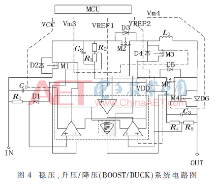 低频可再生能源受外界的影响,如对风能收集因风速的不同,需要实时调整电路输入电压和风力发电机转速,即需要MPPT[5]控制。如图4所示,电路应用BOOST/BUCK电路代替单一的升压或降压电路[6],提高调控范围。