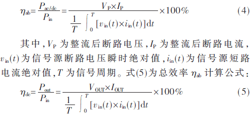 因系统未介入其他输入,收集的杂散电能经AC/DC、DC/DC系统整流所转化的效率ηab即为系统整流后的直流输出总效率。如式(4)所示: