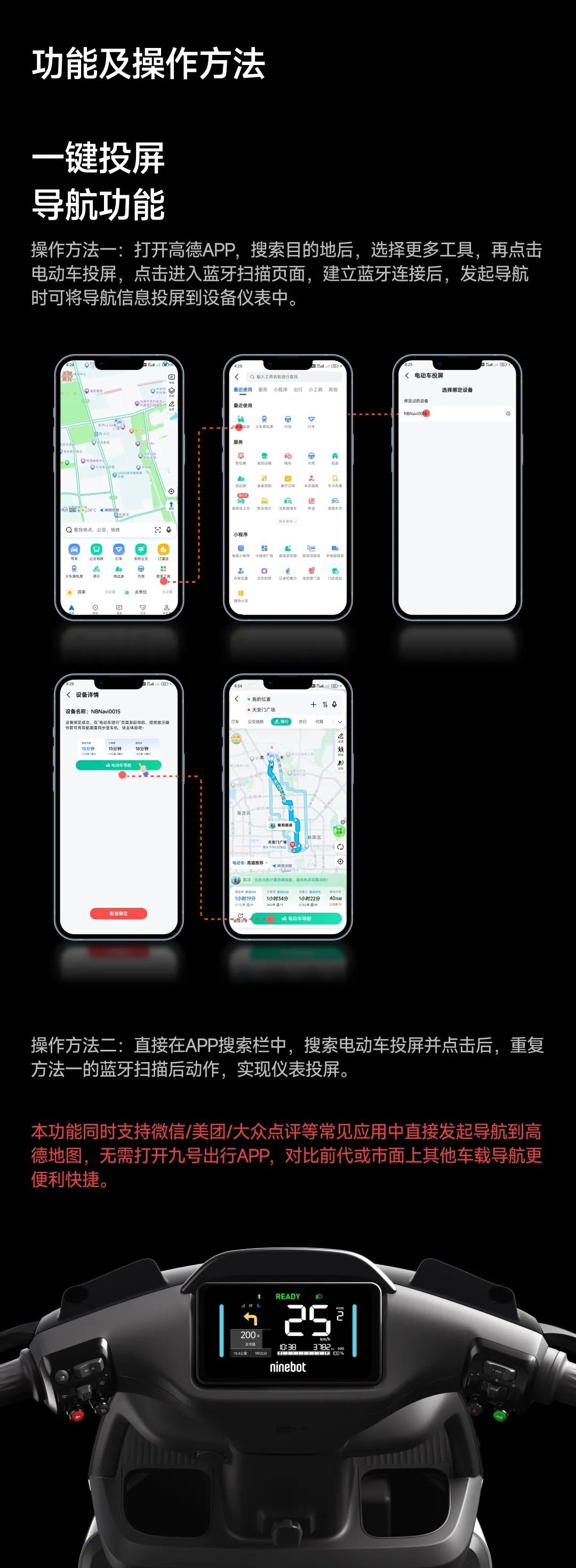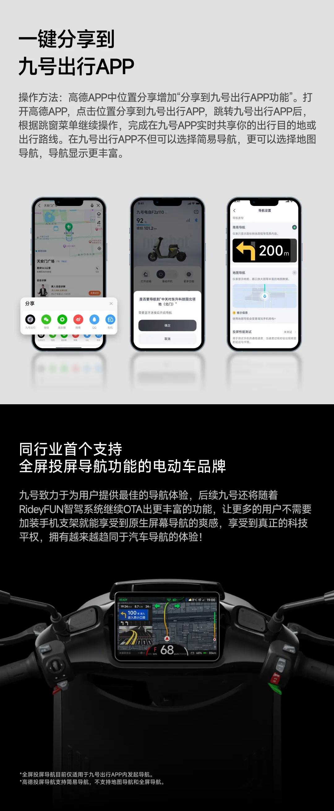 九号电动 × 高德地图:新增一键投屏导航、分享到九号出行App
