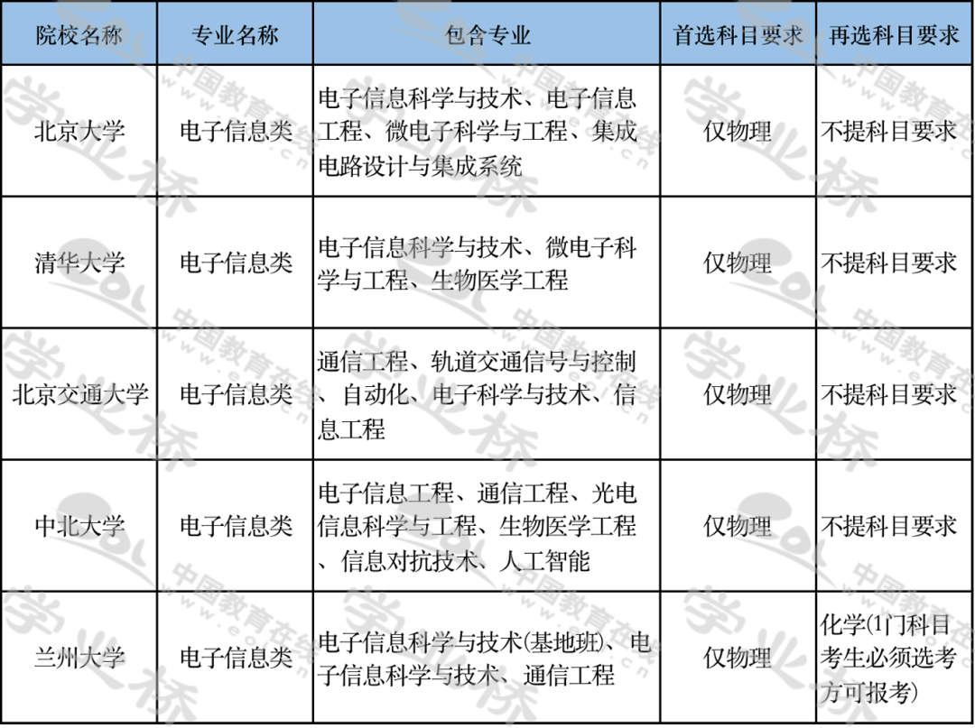 2020年北京等地采用3+3选科模式,在该模式下,大部分院校的电子信息类专业要求选考科目必须为物理,如清华大学、北京交通大学、中北大学等。