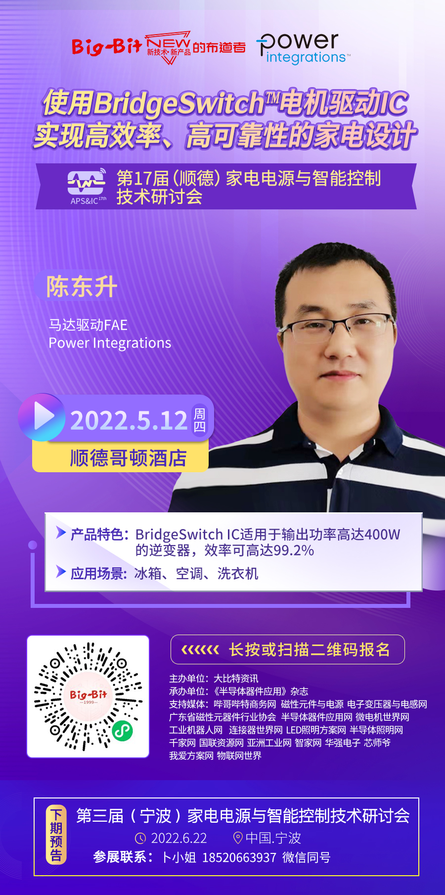 【哔哥哔特导读】敬请期待Power Integrations马达驱动FAE陈东升带来的演讲。