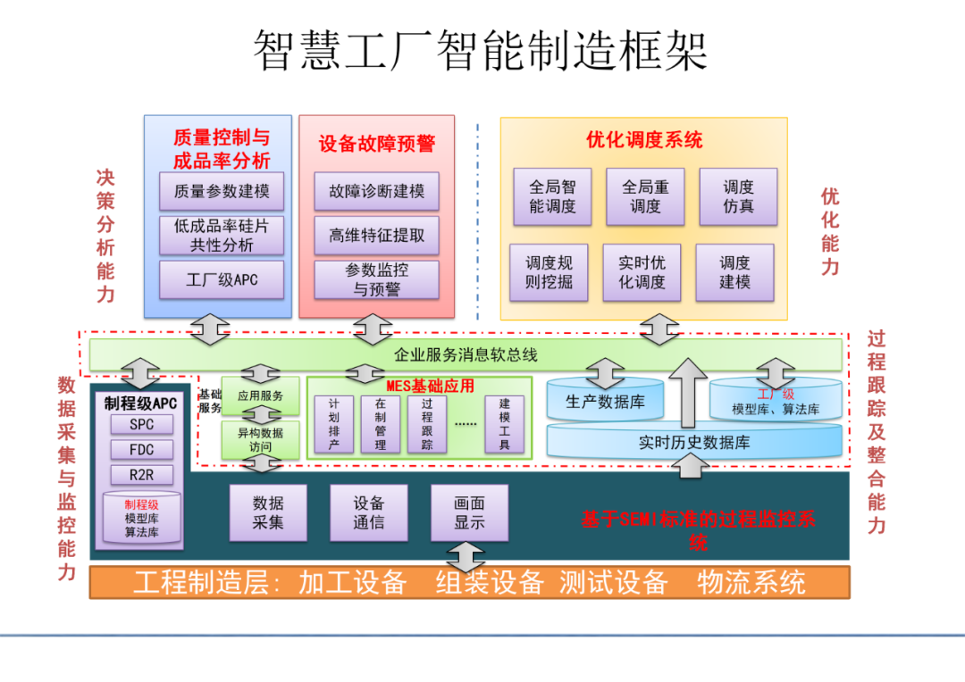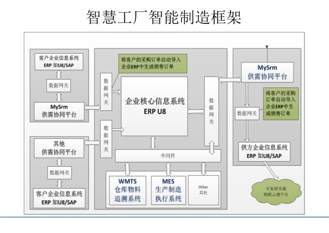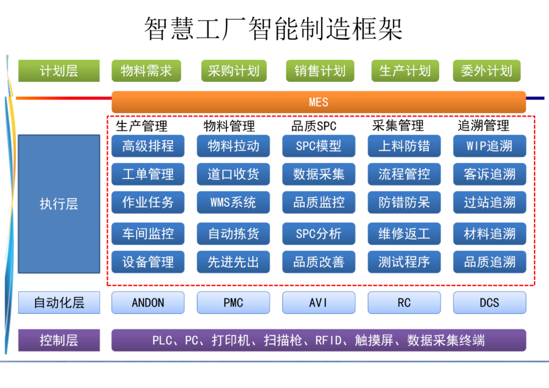 框架概述 :以企业 ERP 为核心,无缝连接供、产、销系统,包括计划层、执行层、控制层和自动化层,实现异构数据访问、应用服务和数据采集与监控等功能。