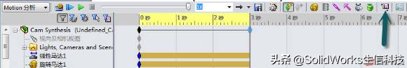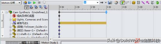 ③.由于从动件的运动周期是3秒,为了保持同步。拖动时间栏的关键帧到3秒,将仿真的周期设置为3秒,如图7。