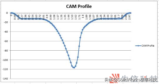 然而使用传统的方法计算凸轮的轮廓费时费力。那么如何快速并且精确的得到凸轮的轮廓呢?我们可以借助SOLIDWORKS Motion来帮助我们快速完成凸轮的设计。