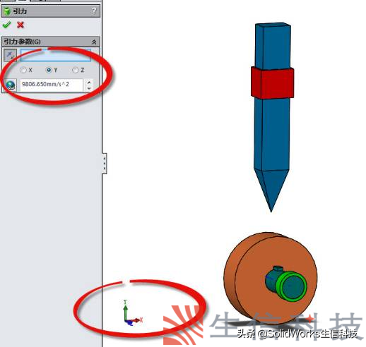 ⑤.添加重力,如图9,方向沿Y轴负方向。
