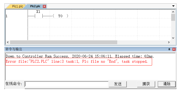 程序结尾一定要包含END程序结束指令,否则报错,无法下载到控制器执行。