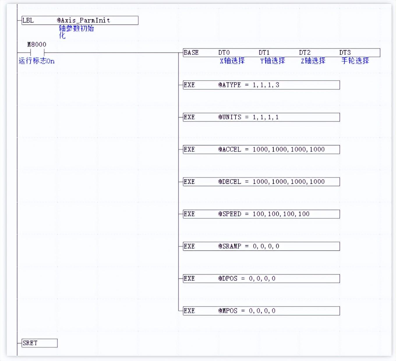 XPLC006E使用PLC编程时,轴的运动指令调用Basic封装的指令。