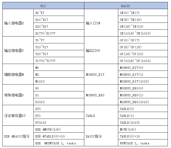 5.PLC与Basic相关寄存器对应关系。