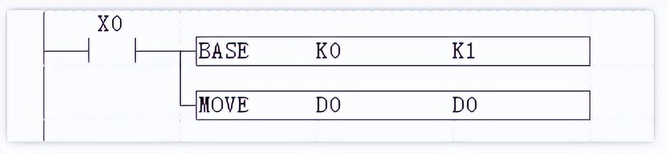 在PLC里调用Basic直线插补语法如上图,直线插补PLC语法“MOVE D0 D2”,操作数应该为PLC操作数支持的格式,插补数据由寄存器传递,不能直接给出。