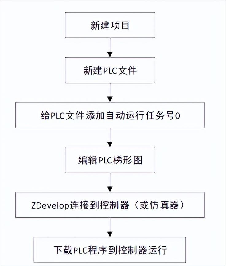 1. 新建工程项目,并下载PLC程序文件到控制器运动的流程如下图。