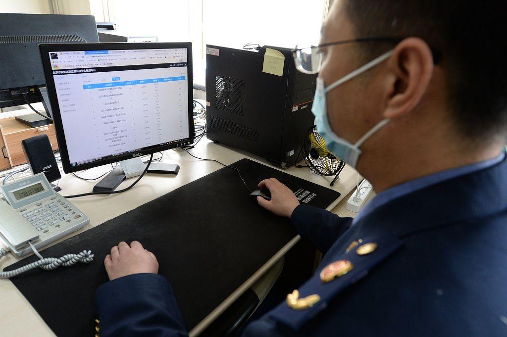 执法人员在北京市智能体温监测与预警大数据平台,实时监控餐饮从业人员体温情况。