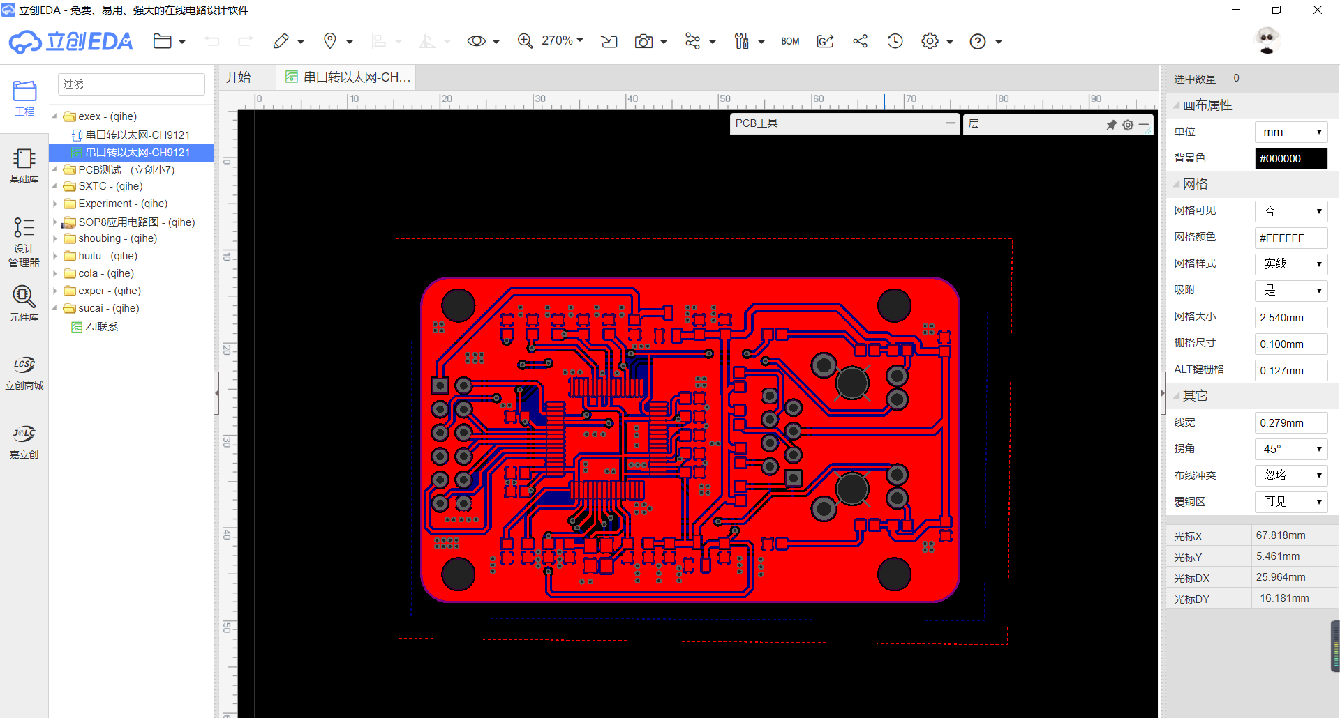 在国内电子工程师相信都对这一款软件也有所耳闻,立创EDA前身是EasyEDA,立创EDA专注于国内,EasyEDA专注于国外,立创EDA也是国内最领先的云端PCB设计工具,拥有强大的库文件,协同开发等功能。其简单易学。高效的设计方式深受电子工程师和学生的喜爱。