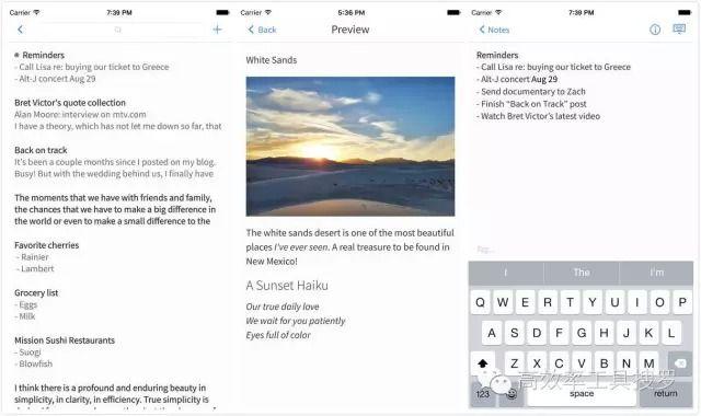 作为一个每个人都需要的便签工具,作为情怀锤出品,质量自然是不用说了,锤子便签简直太让人省心了,简洁的界面,支持Markdown,没有多余的修饰,都为它加分不少,它不仅可以输入文字,还可以插入图片,进行图文混排也在适合不过了,你可以随时随地将便签的内容生成长微博或者图片,分享出去。