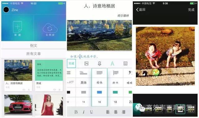 Zine 是一个独特而创新的笔记应用。如果你是想记记日记,使用其他笔记应用完全可以,但是如果你不太满足,想让自己写的东西像杂志质感的排版,而Zine 刚好能满足你,不管你在家,在地铁,所有地方都可随意编辑,各种字体,颜色,大小,在所有平台的阅读体验都是一致的,而且全平台可以同步编辑,而且Zine 除了是一个笔记应用,它也是一个内容平台,Zine 会根据你的兴趣每天向你推荐5 篇文章,你还可以开通自己的专栏,分享你的知识与经验。
