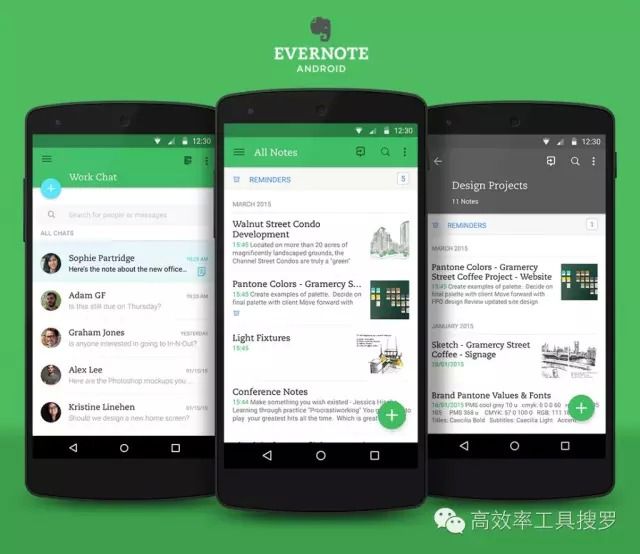 印象笔记是一款笔记软件,它不仅仅只有多平台支持,而且功能强大,除了简单的笔记创建,还可以创建待办清单,强大的搜索功能,而且还有浏览器剪藏,对网页重新排版阅读功能;最近界面的重新设计又为它加了分,Android 版本也添加了Material Design 的风格;同时提供专业版的功能更多,对于团队来说,很不错。
