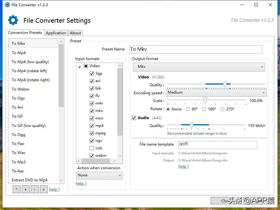 使用方式非常简单,安装完毕之后,直接对着你要转档的档案按下右键,找到file converter 就能够直接选择要转档的格式。可转档的文件类型包含:音乐、影片、文件、图片等通通都没问题。也同时选择多个档案批次转档。