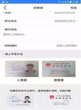 第三步:实名认证。准备好身份证,上传有效身份证原件的正反面图片,核对并完善相关个人信息后,点击“下一步”。
