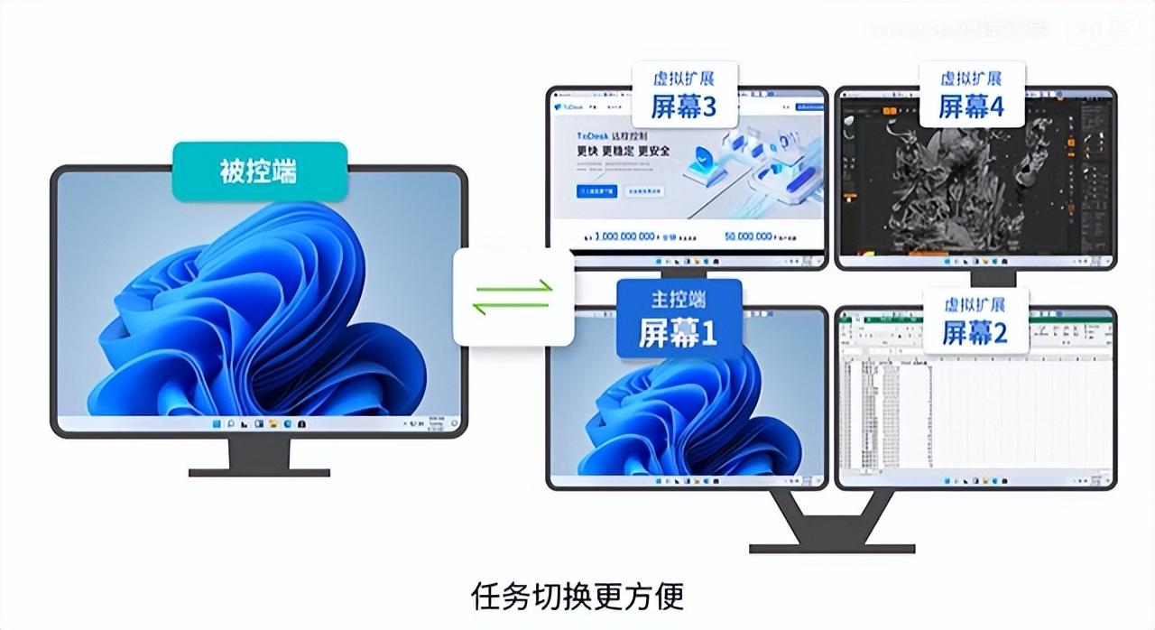换个角度想,可理解为有两个电脑屏幕,却将一台电脑利用出了多台电脑的感觉,算是大幅度提升了我们对主控屏幕利用率。而且当物理屏显示的是在进行软件测试,虚拟屏1在搜索资料,虚拟屏2在播放视频,虽同时进行不同工作,但他人却只能看到物理屏显示的界面,从而充当了“高级隐私屏”,更好地保障了办公的信息安全!