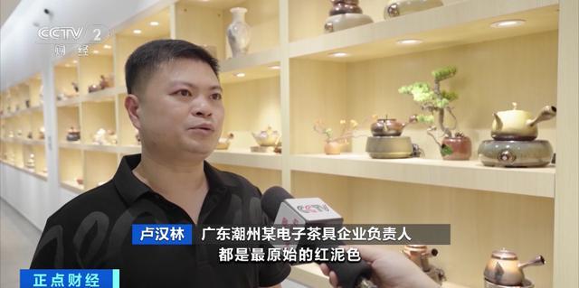 广东潮州某电子茶具企业负责人 卢汉林:以往陶壶都是最原始的红泥色,都是四五十岁人群喜欢的颜色。后来越来越多的年轻人喜欢更多色彩的茶具,今年我设计了将近20款新颜色。