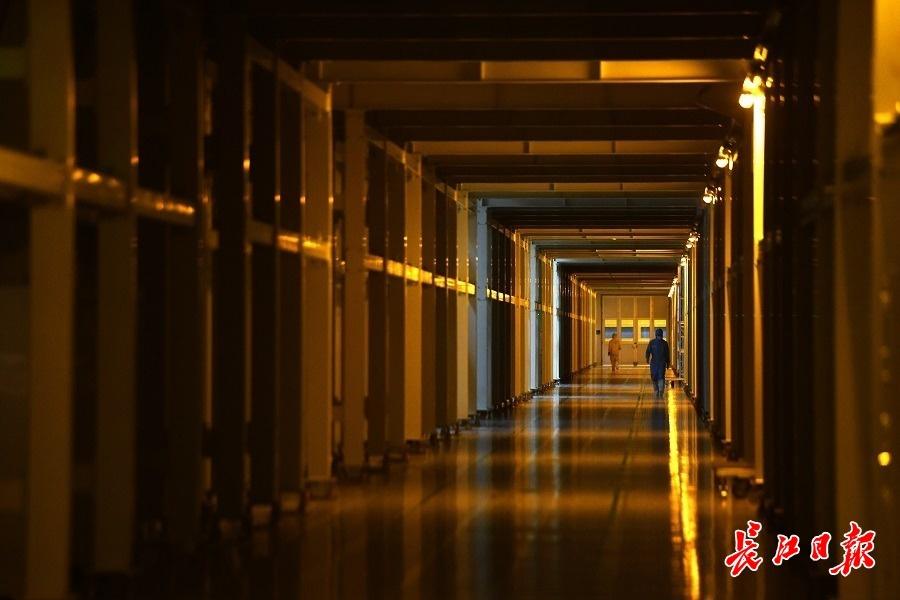 武汉华星光电约40万平方米厂房内犹如时空隧道一般的人行通道。长江日报记者周超 摄