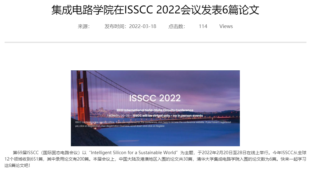 关于ISSCC,2020和2021年各入选了一篇,2022年没有。