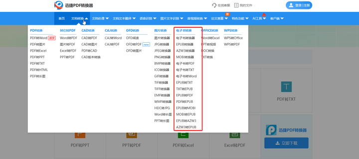 除了和大家分享电子书之外,还给大家准备了一个好用的电子书格式转换网站,下载的PDF、epub、mobi等电子书格式想要转换成PDF或其他格式的话,都可以用“迅捷PDF转换器 ”完成。