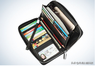 这款钱包由100%真皮制成,颜色多样,有17个信用卡插槽、一个身份证卡槽、一个带拉链的零钱袋、一个笔环和一个腕带。这个钱包看起来就是一个时尚的“普通”钱包,但它能提供全面的RFID保护 。