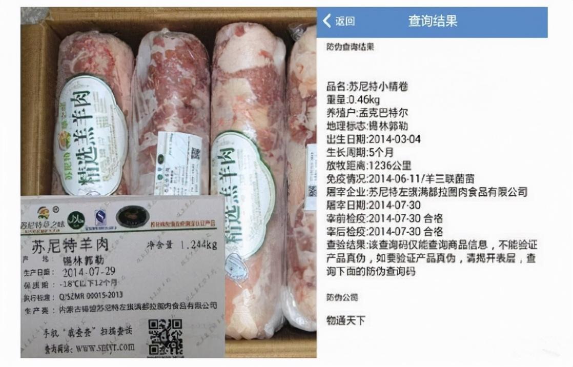 苏尼特左旗农村牧区综合改革办公室主任龙云鹏介绍:“消费者拿到苏尼特左旗羊肉的成品时,包装上内外二层均有二维码,外面二维码可扫描到羊的出生日期及养殖户、屠宰加工厂及加工日期等溯源信息 ,里面的二维是防伪码,只能扫描一次,第二次扫描相关消息就消除了,能有效杜绝伪造苏尼特羊肉的事情发生。 ”