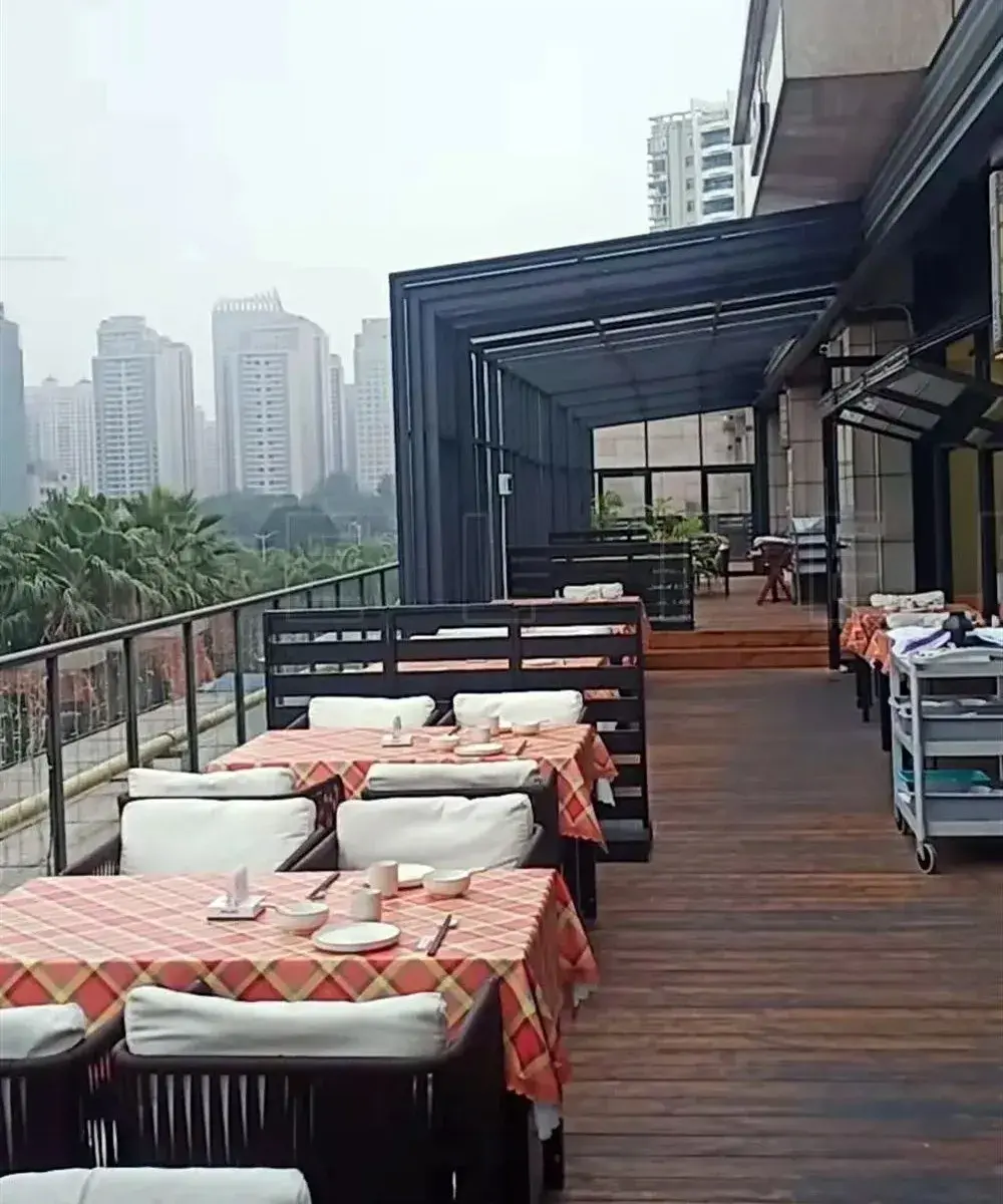▲赛尔特阳光房项目——海口餐厅滑道伸缩移动阳光房