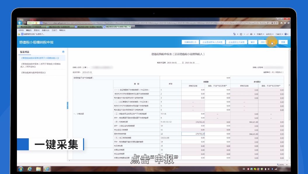 为提高办税效率,广东省税务局优化服务举措,完善电子税务局功能,为增值税小规模纳税人网上申报新增了“一键采集” 功能,让纳税人足不出户完成申报,大大节约办税成本,持续提升纳税人满意度。