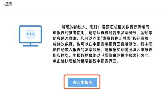 此时系统将弹出部分提示框,点击“进入申报表”