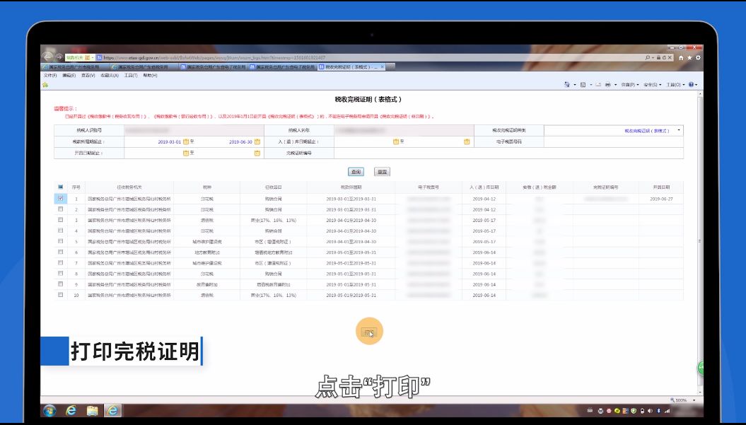 查询出来以后,选择我们需要打印的税种以及所属期