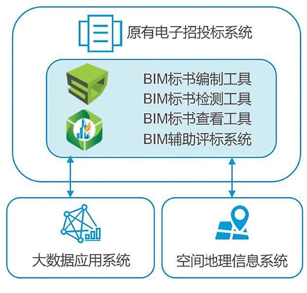 基于BIM的电子招标投标系统是将BIM技术引入招标投标过程,基于三维模型与成本、进度相结合、以全新的五维视角,集成大数据研究成果,并与空间地理信息平台对接,打造基于BIM+大数据+GIS的专业招标投标模式,实现了建设工程招标投标向智能化、可视化跨越式变革(图1)。