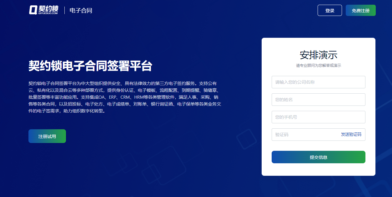优缺点 :契约锁的主要优势在于其针对中大型组织的全面电子签名解决方案,以及与业务系统的高度集成能力。其专业性和多行业适应性使其成为电子签名市场的佼佼者。同时,契约锁提供免费试用和体验Demo,方便潜在客户评估其服务 (https://www.qiyuesuo.com/contract)