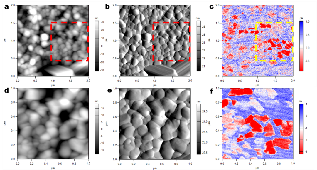 图1 钙钛矿薄膜在光照与黑暗条件下的c-AFM研究