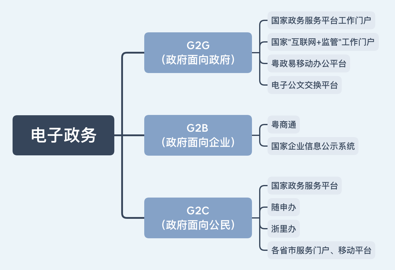 电子政务 类别有哪些呢? - 肥肥鸭 的回答 - 懂得电子政务类别编辑G2G:政府间电子政务G2B:政府-商业机构间电子政务G2C:政府-公民间电子政务G2E:政府-雇员间电子政务电子政务主要内容编辑1.政府从网...
