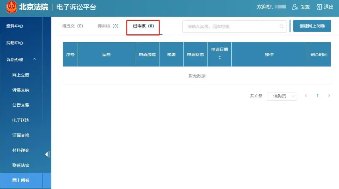 通过手机端申请的借阅以及通过北京法院电子诉讼平台申请的借阅,都需要进入北京法院电子诉讼平台网上阅卷模块,在已审核模块中进行卷宗PDF查阅。
