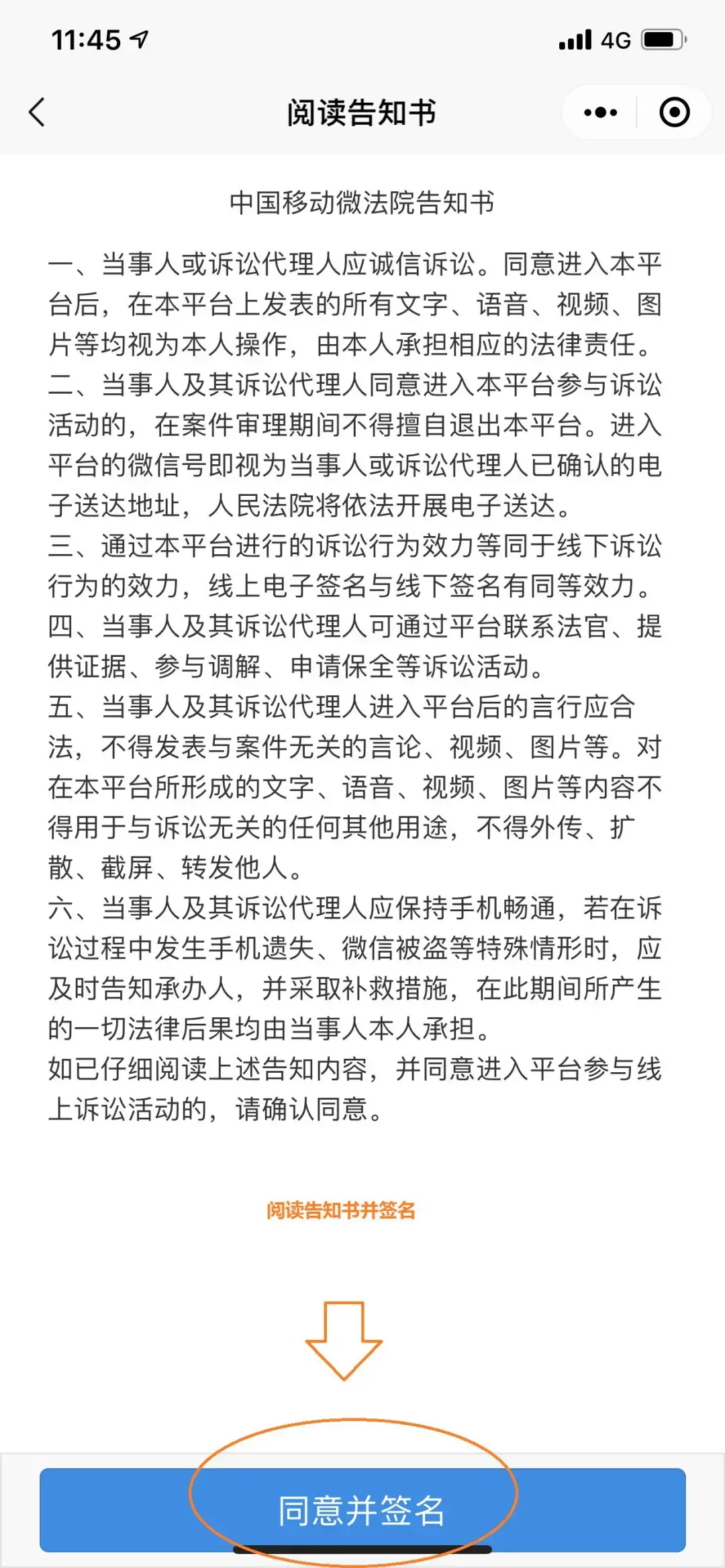 人脸核验通过后,会提示“中国移动微法院告知书” ,阅读并签名。完成后,整个认证过程即结束。再次打开“北京移动微法院” ,身份会自动显示已认证,可以开始使用北京移动微法院当事人诉讼服务功能。