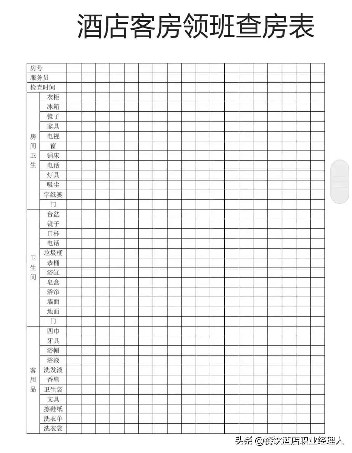 客房部各种实用表格