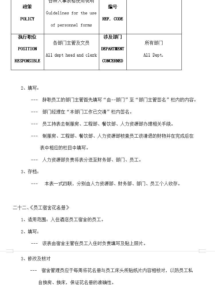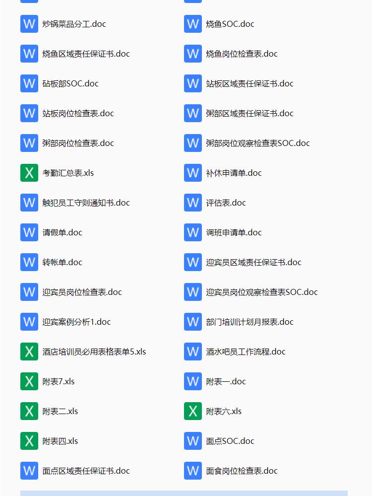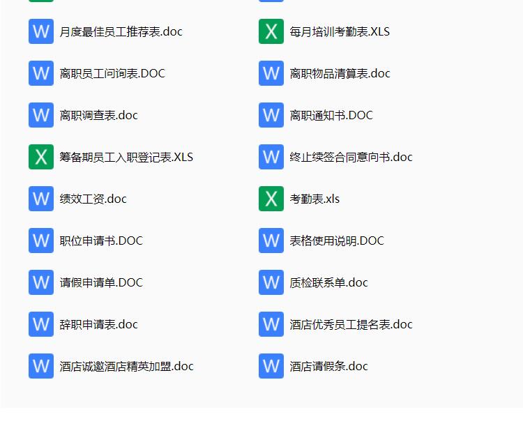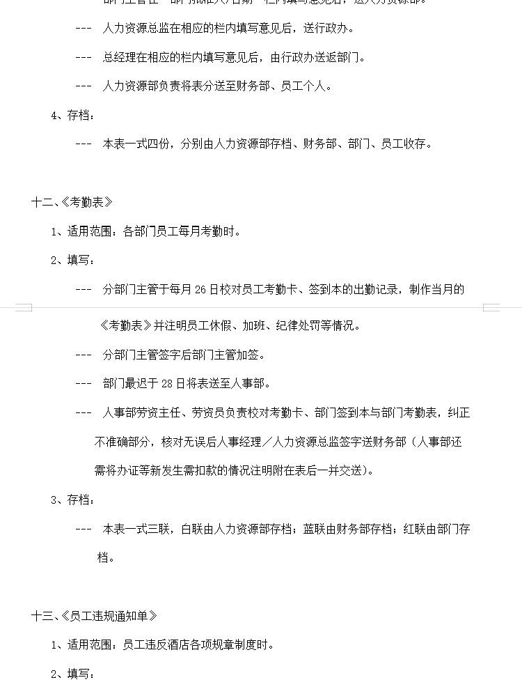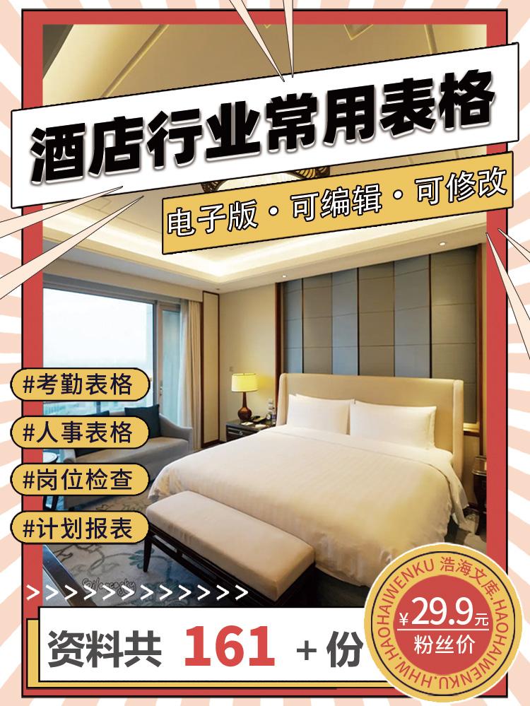 酒店行业常用表格资料合集,包含考勤表格,人事表格,计划报表等